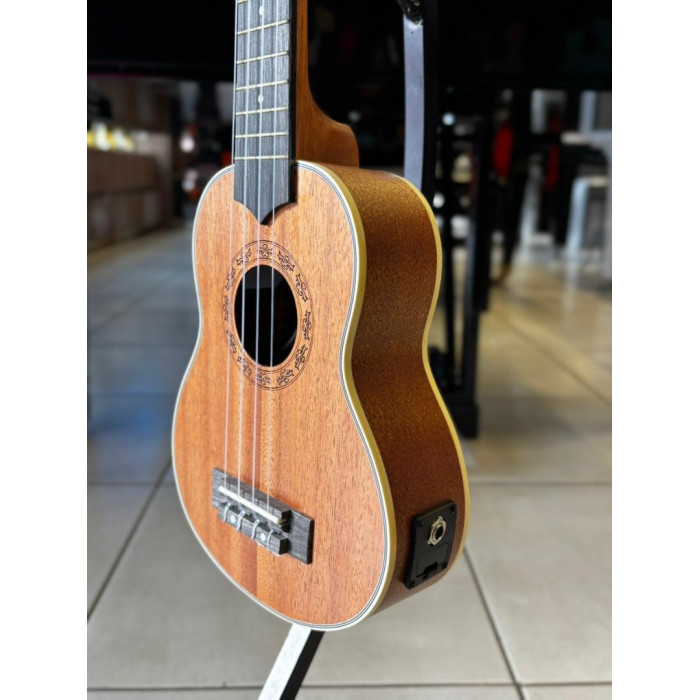 O Ukulele Soprano Namastê NU21MGQE apresenta excelente acabamento acetinado deixando aparente detalhes da madeira Mahogany, proporcionando ao instrumento, um visual diferenciado. Utilizando madeiras nobres, seu tampo, lateral e fundo são feitos em madeira Mahogany e suas tarraxas são blindadas com acabamento cromado. Possui uma qualidade sonora excepcional!