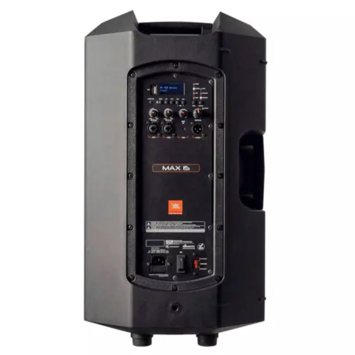 Som Profissional, sem comparação. A caixa de som portátil MAX 15, oferece qualidade e volume de som referência no seguimento de caixas acústicas amplificadas, total facilidade ao uso, conjunto de recursos incomparáveis e ao preço mais acessível da JBL. Com um simples toque no tone touch você escolhe a melhor tonalidade entre cinco predefinições e mais três para a aplicação, duas entradas combinadas entre microfone e instrumento com troca automática entre microfone e line conforme você gira o potenciômetro de volume. Reproduza músicas, trilhas sonoras ou faixas de playback com o Streaming de áudio Bluetooth®, ou relaxe ouvindo sua música favorita através do MP3 Pendrive com troca de pastas em um display de alta qualidade. Um gabinete em formato exclusivo para aplicações em pedestal com duas escolhas de alcance, posicionamento em modo monitor ou içadas através de três pontos de içamento, uma tela resistente com desenho moderno e harmonioso que suportam um estilo de vida itinerante. Sistema tipo Duas vias 15 Amplificado Gabinete Polipropoleno com tela em aço. MAX SPL 129 dB Resposta de frequência (±3 dB) 59Hz - 16,5Khz Potência 350 Watts RMS Impedância de entrada 100k ohm balanceado Padrão de cobertura 100o (horizontal) x 60o (vertical) nominal Bluetooth Audio streaming, Bluetooth versão 5.0 DSP 15 presets Conexões 2 Entradas XLR/TRS combo mic/line, 1 Entrada Aux 3,5 mm ,1 Saida XLR pass-thru Suporte 35 mm (duplo ângulo) Profundidade 415 (mm) Largura 425 (mm) Altura 729 (mm) Peso Liquido 19 Kg