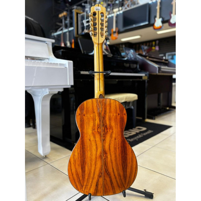 Acabamento: Geralmente com acabamento brilhante, detalhes em marchetaria (mosaico de madeira), e roseta em madeira, conferindo elegância.