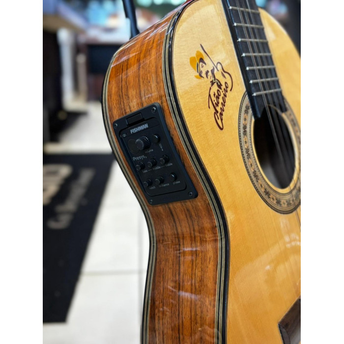 Tampo em Spruce Maciço: Proporciona um som nítido, com excelente projeção, harmônicos ricos e grande dinâmica.