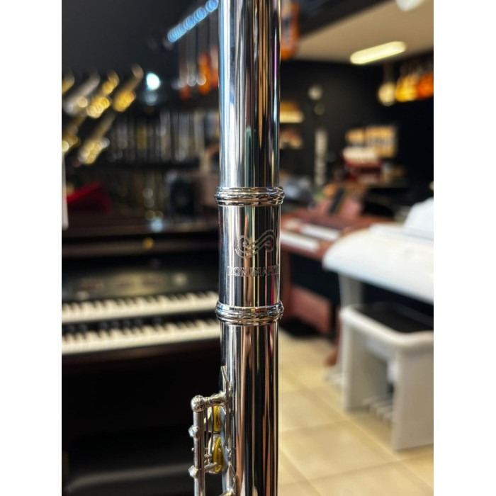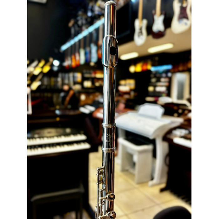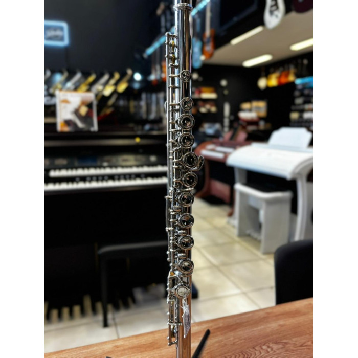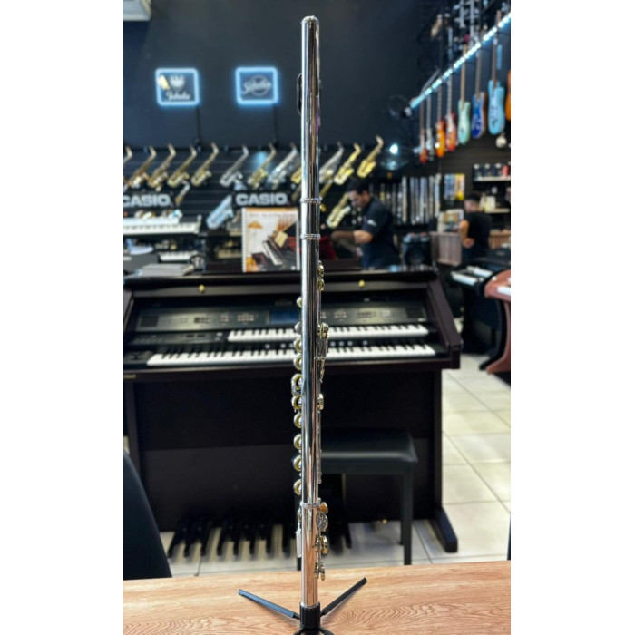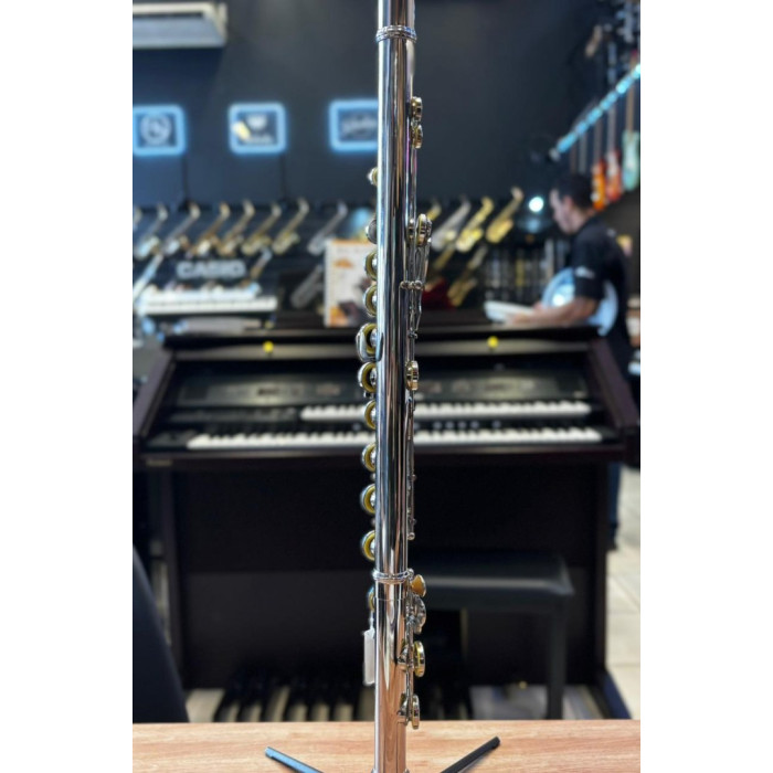 A flauta transversal DOMINANTE com afinação em C (Dó) destaca-se por sua ótima construção e sonoridade. Com um acabamento niquelado brilhante, este instrumento oferece um alto padrão sonoro que atende às necessidades dos flautistas de diferentes estilos musicais. Seu pé em C (Dó) com furos fechados e mecanismos G (Sol) Off Set proporcionam versatilidade e conforto ao músico.