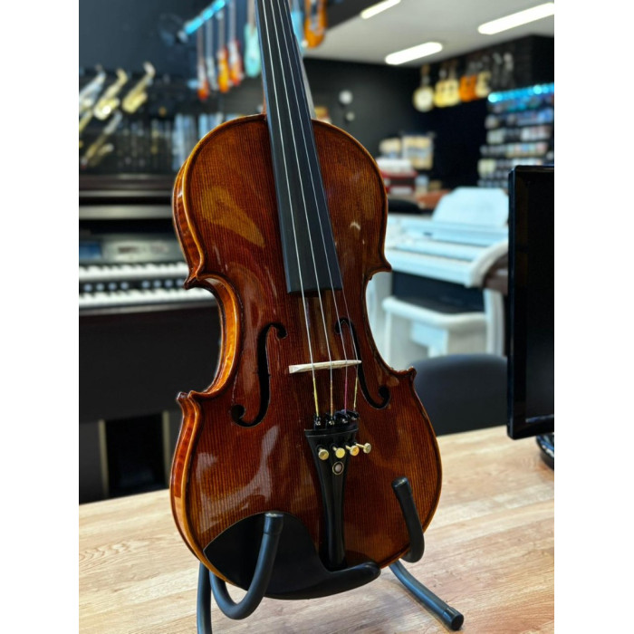 O VK 644 é um violino clássico profissional construído com madeiras nobres para oferecer uma experiência única. Este modelo é construído artesanalmente e tem como principais atributos seu tampo de Spruce Maciço selecionado, lateral e fundo de Maple trabalhado, seu arco profissional e seus outros componentes de Ébano selecionado. As madeiras com acabamento envelhecido lhe conferem um belíssimo visual e uma sonoridade impressionante. E para conservar e prolongar sua vida útil, o VK 644 é acompanhado de um luxuoso estojo retangular com higrômetro que lhe garante um perfeito acondicionamento.