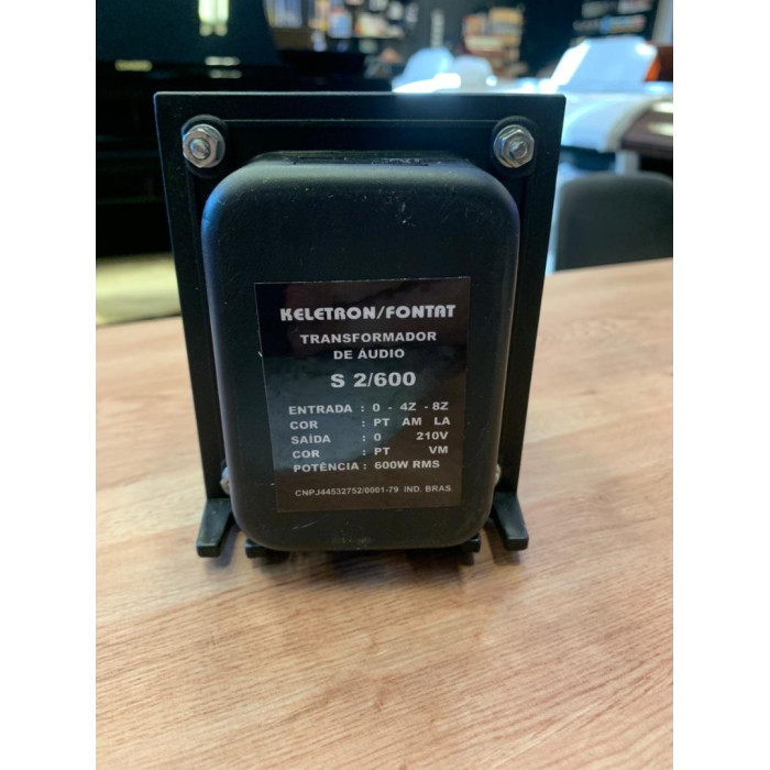 O Transformador Keletron S2/600 é um trafo tronco de áudio projetado para sistemas de som ambiente que utilizam linhas de alta voltagem. Sua função principal é elevar a tensão do sinal de saída do amplificador para reduzir perdas em longas distâncias de fiação.