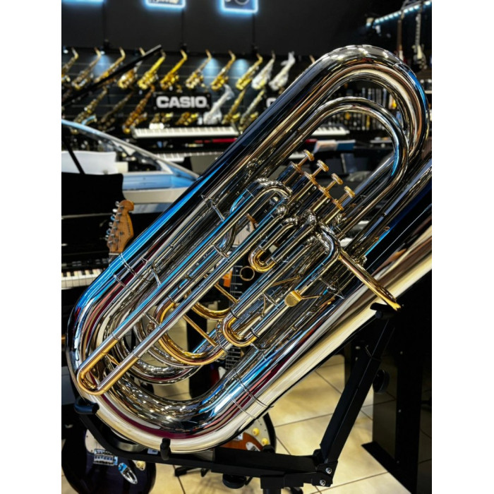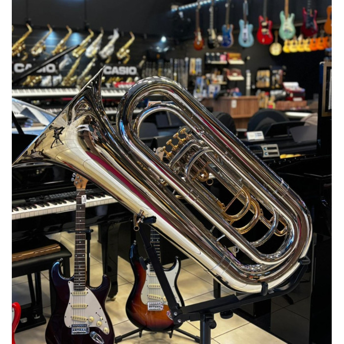 TUBA SINFÔNICA MUSICALLE 4/4 BB 4 PISTOS NIQ/CH BANHO OURO