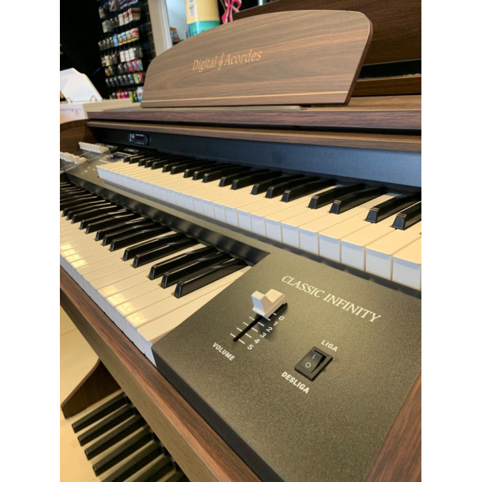 O Órgão Digital Acordes Classic Infinity Marrom é um instrumento eletrônico compacto, muito procurado por quem busca um modelo de entrada com boa relação custo-benefício, sendo ideal para uso em apartamentos ou espaços reduzidos.