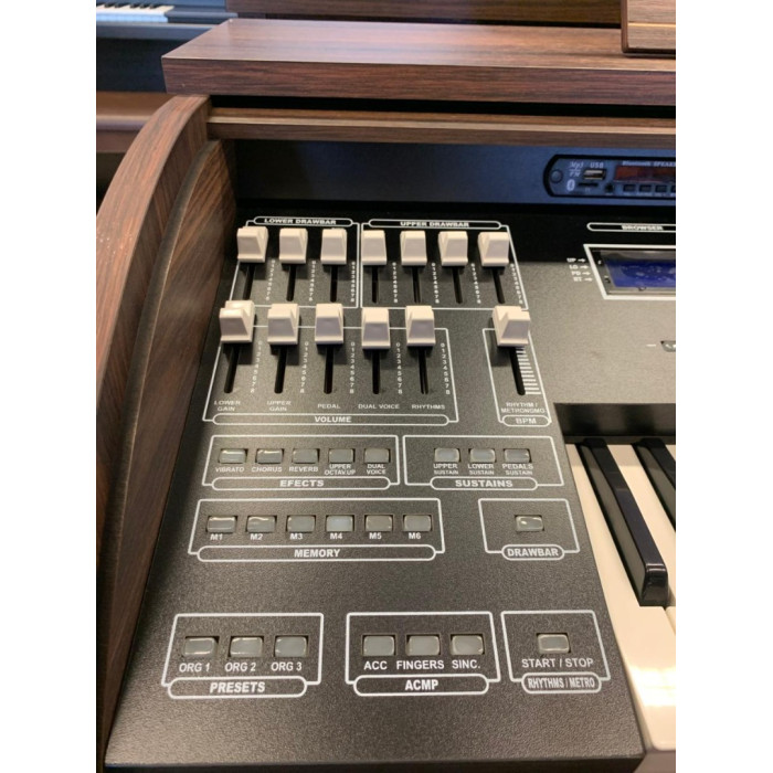 Teclados: Possui dois teclados de 49 teclas (Dó a Dó), permitindo uma execução confortável tanto para estudantes quanto para organistas mais experientes.