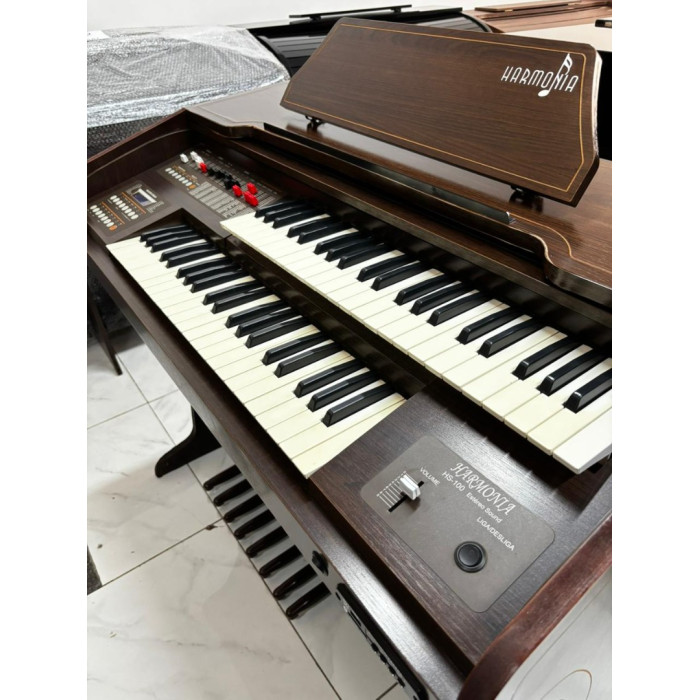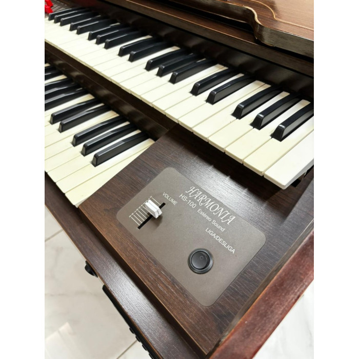 Orgao Harmonia Hs100 Amadeirado é um órgão eletrônico funcional com design clássico de madeira, ideal para quem gosta do som e visual dos órgãos tradicionais, mas com a tecnologia eletrônica moderna.