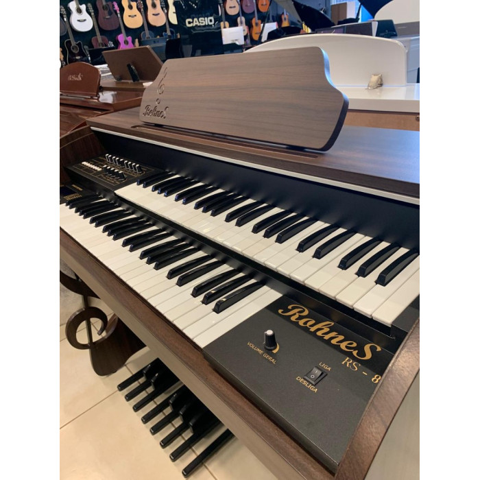 O Órgão Eletrônico Rohnes RS-80 é um modelo moderno, frequentemente vendido em conjunto com banqueta, focado em organistas que buscam um instrumento completo para estudo e prática diária.