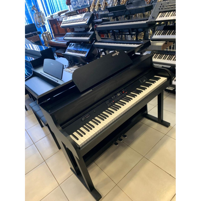 Teclado: Possui 88 teclas com peso tradicional (ação de martelo) para simular a resistência de um piano real.