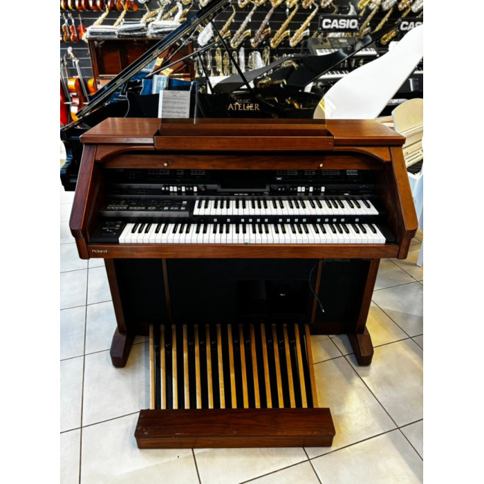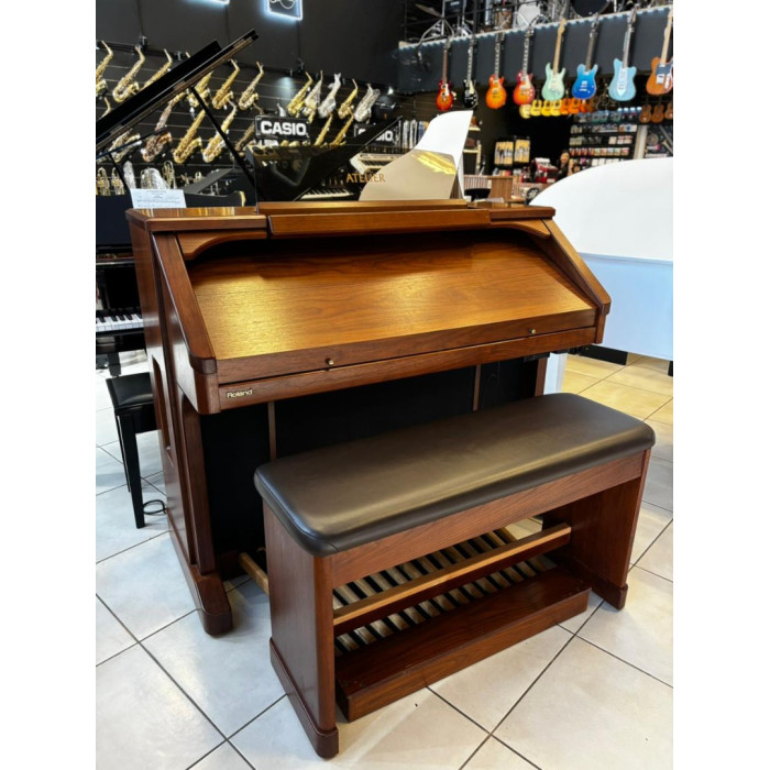 O Roland AT-900 amadeirado oferece uma experiência completa de órgão, unindo a estética tradicional da madeira com a tecnologia sonora avançada da Roland, sendo uma peça de destaque para organistas exigentes.