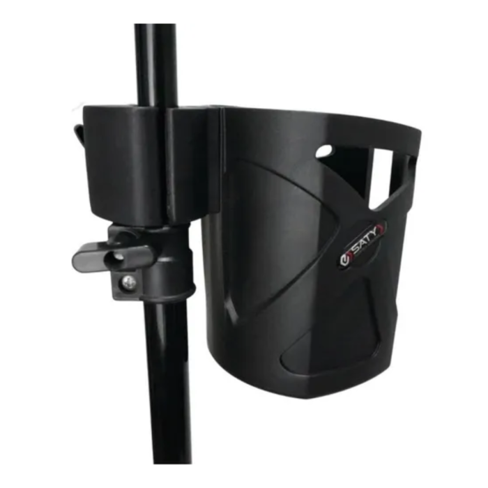 O Suporte para Bebida Saty SCL-20 é compatível com uma variedade de pedestais e pode acomodar copos térmicos do tipo Stanley. Disponível na cor preta, é uma solução prática para músicos, palestrantes e ambientes como igrejas.
