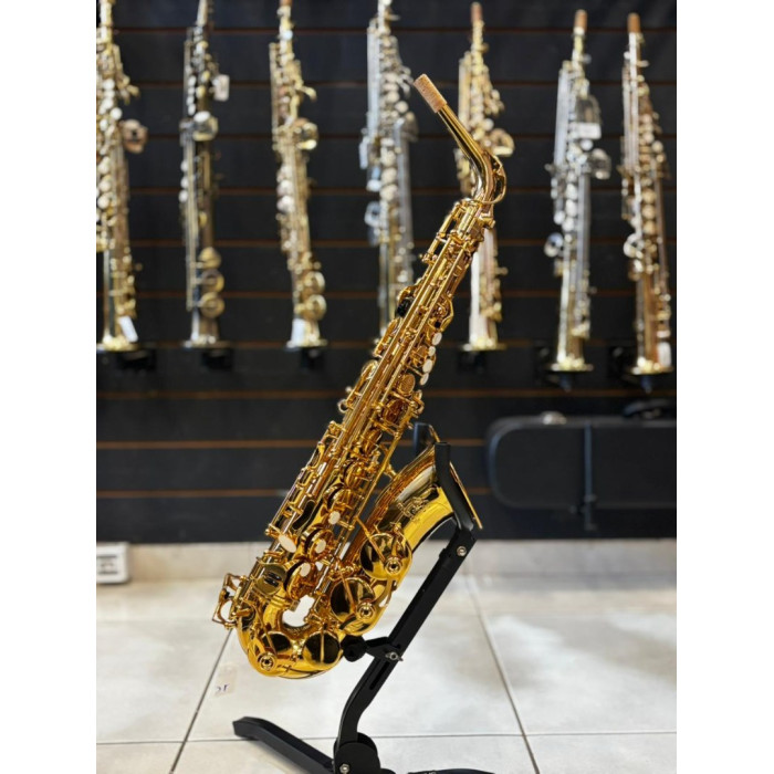 O saxofone Musicalle possui acabamento em verniz Dourado (Gold) no corpo e chaves deixando o instrumento bem clássico, elegante e refinado, também possui detalhes em botões em madrepérola e a campana ornamentada (gravada a mão), itens que valorizam ainda mais o visual do instrumento.