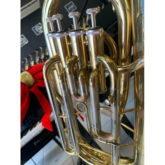 Pistos: 4 pistos (válvulas) de acionamento vertical (em linha). A quarta válvula aumenta a extensão da escala e auxilia na afinação das notas graves, proporcionando mais versatilidade ao músico.