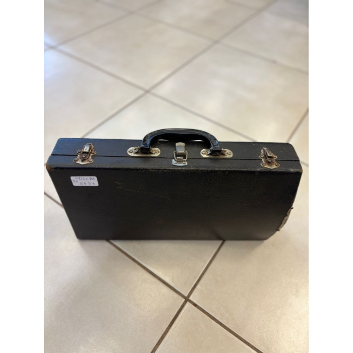 Instrumento usado fabricado com o corpo em ABS e as chaves em metal com acabamento prateado. Acompanha estojo. Clarinete original Weril com afinação Sib. Instrumento fabricado com o corpo totalmente em resina ABS com acabamento brilhante com as chaves e anéis em metal com acabamento Prateado (Prata).