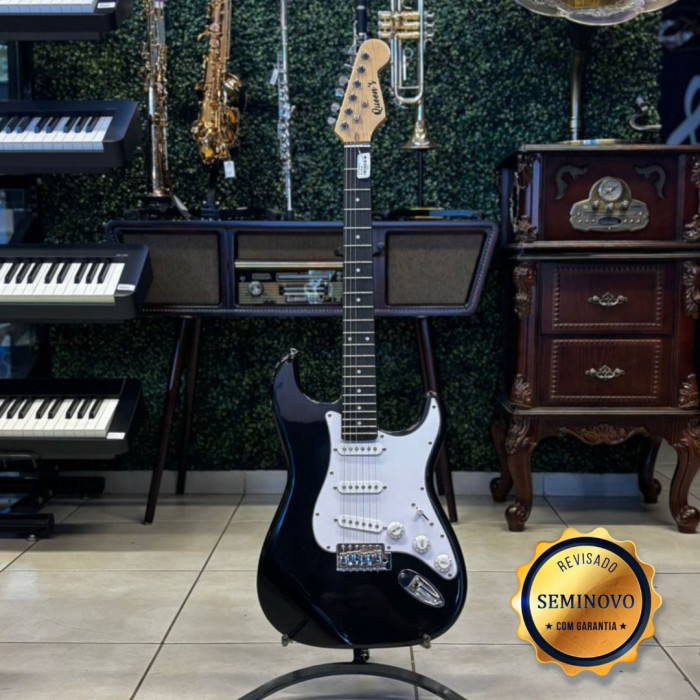 Guitarra Queen´s Strato Preta - Seminova