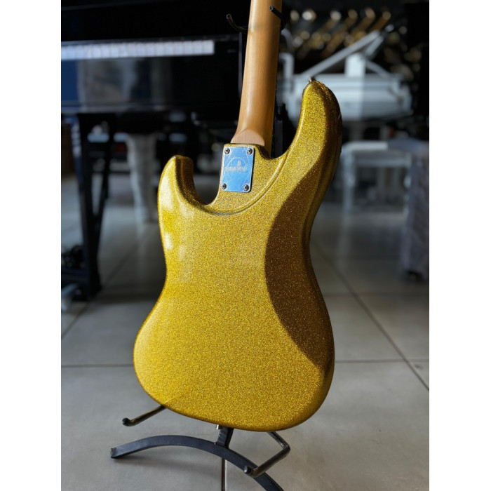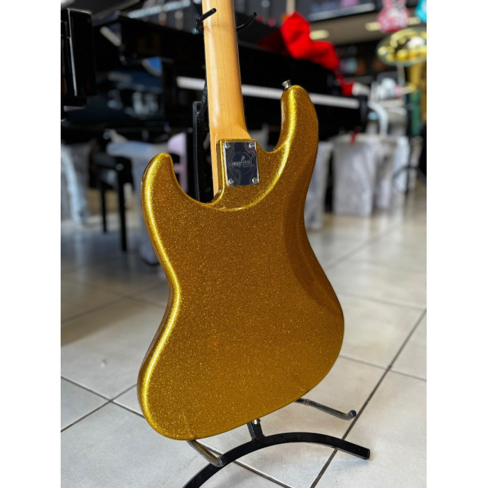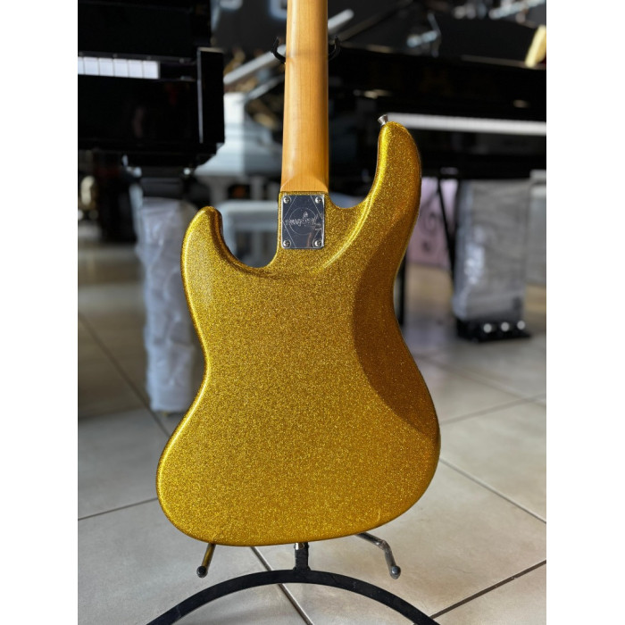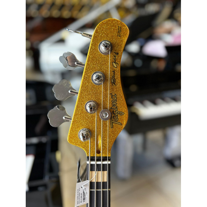 A cor Golden Sparkle e o escudo Mint Green conferem um visual deslumbrante e distinto a este instrumento,