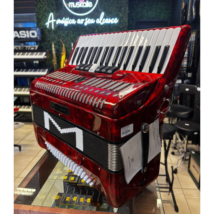 Acordeon Michael Acm8007n 80 Baixos Vermelha C/Case