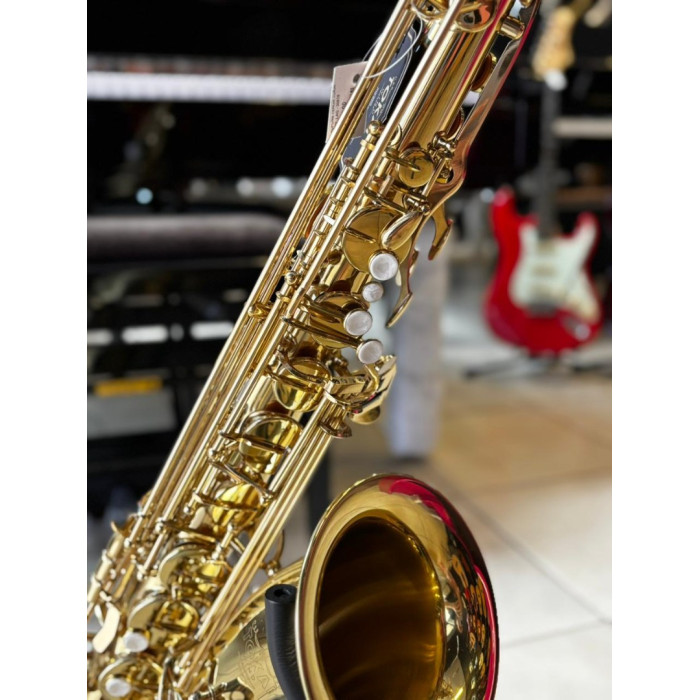 Com chaves Fa# Agudo e Sib Grave Articuladas, este saxofone proporciona uma ampla gama de tonalidades, permitindo ao músico explorar diversos estilos musicais. O apoio de polegar ajustável e os botões em Madrepérola garantem conforto e ergonomia, enquanto as chaves reforçadas garantem durabilidade e precisão.