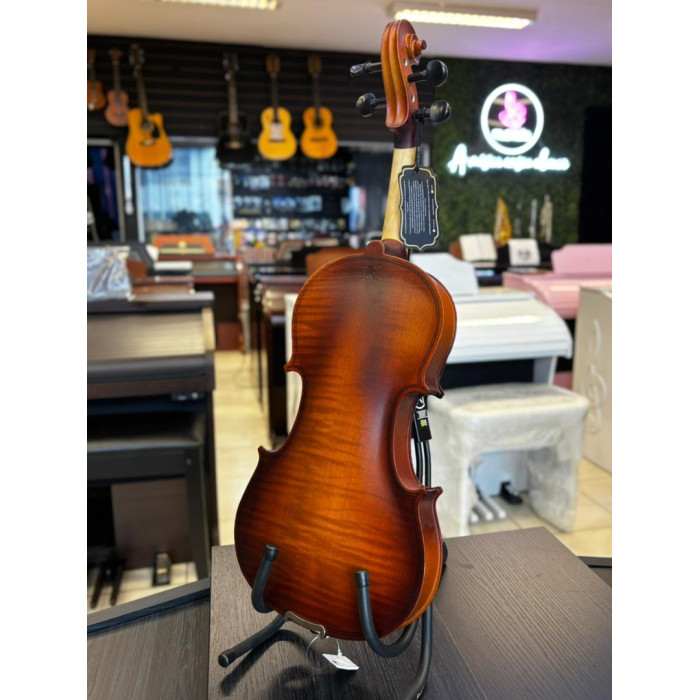 Seu tampo confeccionado em Linden laminado com Spruce garante projeção e clareza tonal, enquanto as laterais e fundo em Linden laminado com Maple proporcionam estabilidade e calor sonoro. A escala, cravelhas, estandarte e queixeira em Dyed Hardwood asseguram resistência e conforto ao tocar, tornando-o um violino ideal para aprendizado, ensaios e apresentações.
