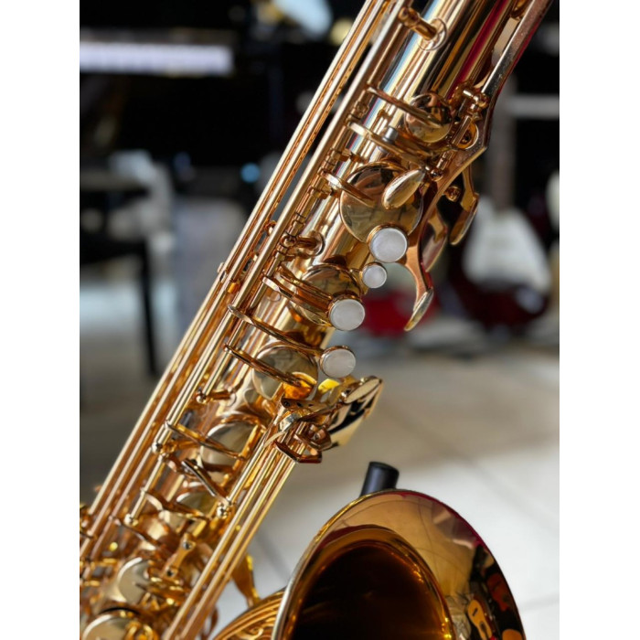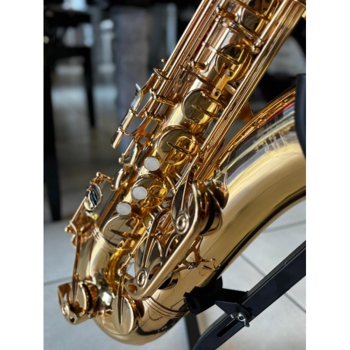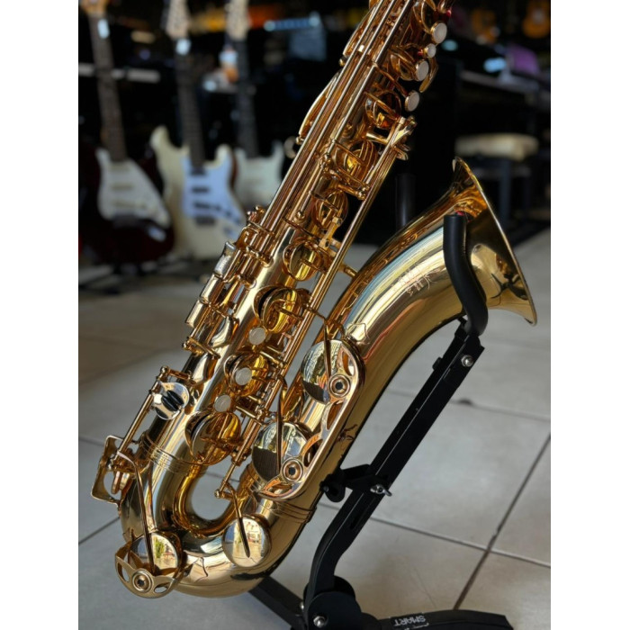 Com acabamento laqueado dourado, este saxofone oferece não apenas um visual sofisticado, mas também resistência e durabilidade para acompanhar você em ensaios, apresentações e estudos.